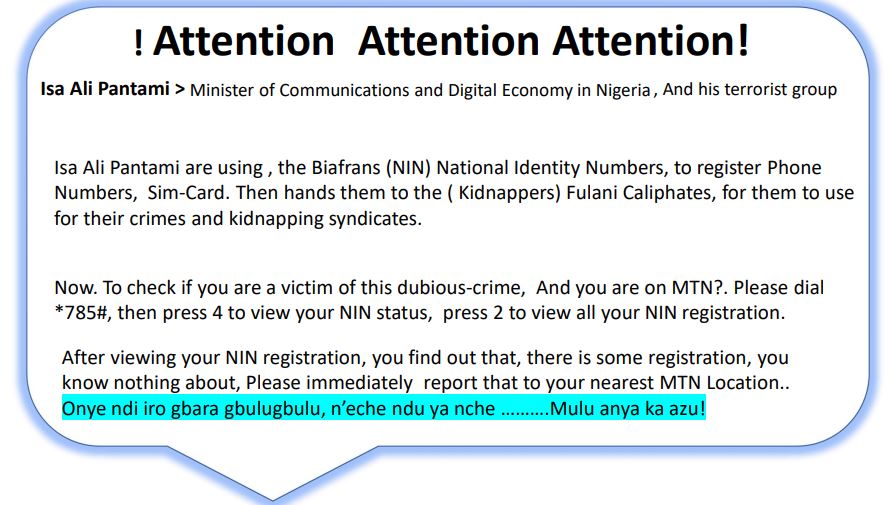 We are advising fulani terrorists government of Nigeria to urgently release Mazi Nnamdi KANU unconditionally before their planned jihad in Abuja. We are monitoring them and the shenanigans they are playing with their terrorist collaborators to take over the government. IPOB is neither bothered nor interested in the plan of the terrorists to overrun the Nigeria government which we have rejected, our concern is the safety of our leader. We therefore, demand that the Nigeria government must release the leader of IPOB now because he committed no crime as enunciated by the UN Right group.